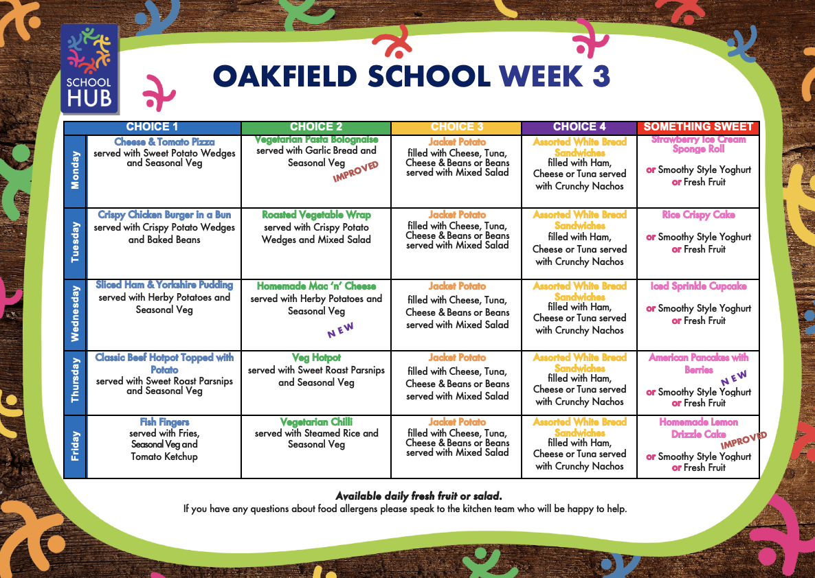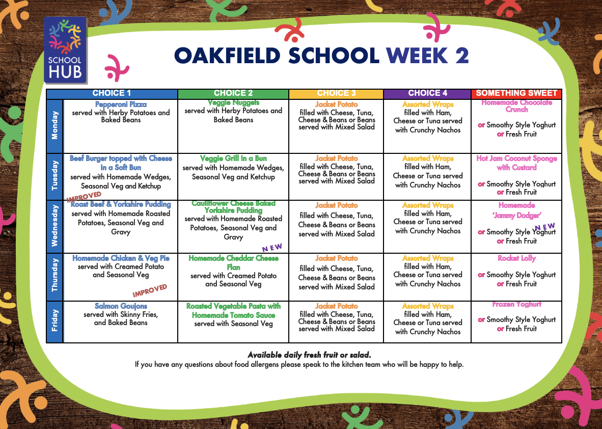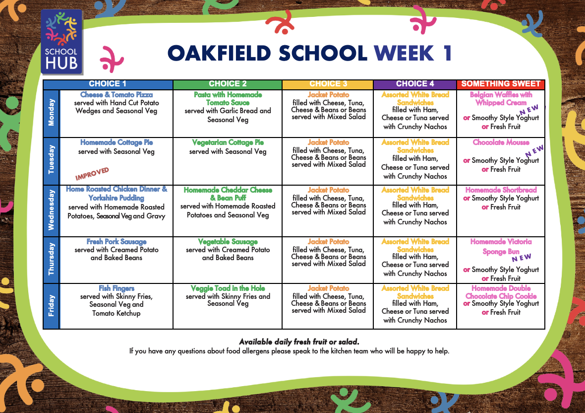 School meals offer a selection of freshly cooked main meals and desserts every day, often including pasta, salad, fresh fruit and yoghurt, for only £3.35 per day